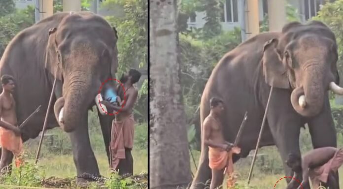 HomeDistrict Newsകൊലയാളി ആനയുടെ കൊമ്പിൽ 5 മാസം മാത്രം പ്രായമുള്ള കുഞ്ഞിനെ വെച്ച് പാപ്പാന്‍റെ അഭ്യാസം :...