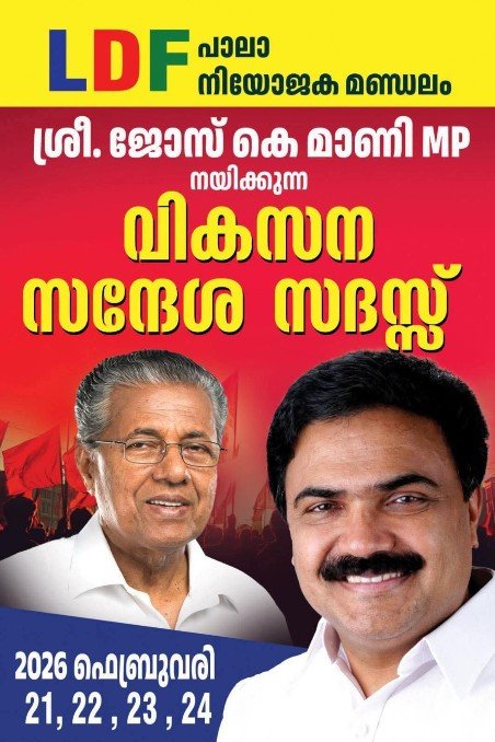 ജോസ്.കെ.മാണി എം.പി നയിക്കുന്ന വികസന സദസ്സ് ഇന്ന് വൈകുന്നേരം 4 മണിക്ക് പേണ്ടാനം വയലിൽ നടക്കും. സദസ്സിന്റെ ഉദ്ഘാടനം പി. സന്തോഷ് കുമാർ എം.പി നിർവഹിക്കും.