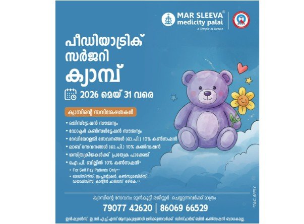 മാർ സ്ലീവാ മെഡിസിറ്റിയിൽ പീഡിയാട്രിക് സർജറി ക്യാമ്പ് മെയ് 31 വരെ
