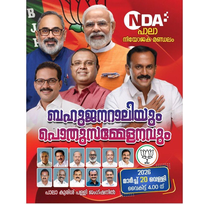 പാലാ: ബിജെപി സംസ്ഥാന ഉപാധ്യക്ഷനും പാലാ നിയോജക മണ്ഡലത്തിലെ എൻഡിഎ സ്ഥാനാർത്ഥിയുമായ അഡ്വ: ഷോൺ ജോർജിൻ്റെ തിരഞ്ഞെടുപ്പ് പ്രചരണാർത്ഥം നാളെ (വെള്ളി) വൈകിട്ട് പാലാ കുരിശുപള്ളി കവലയിൽ എൻഡിഎയുടെ ബഹുജന റാലിയും പൊതുസമ്മേളനവും തിരഞ്ഞെടുപ്പ് കമ്മിറ്റി ഓഫീസ് ഉദ്ഘാടനവും നടക്കും.
