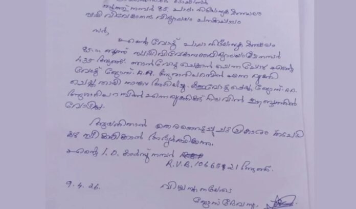 പാലാ മണ്ഡലം ബൂത്ത് 85 പനയ്ക്കപ്പാലം വിവേകാനന്ദ സ്കൂളിൽ ആളുമാറി വോട്ട് ചെയ്തതായി പരാതി